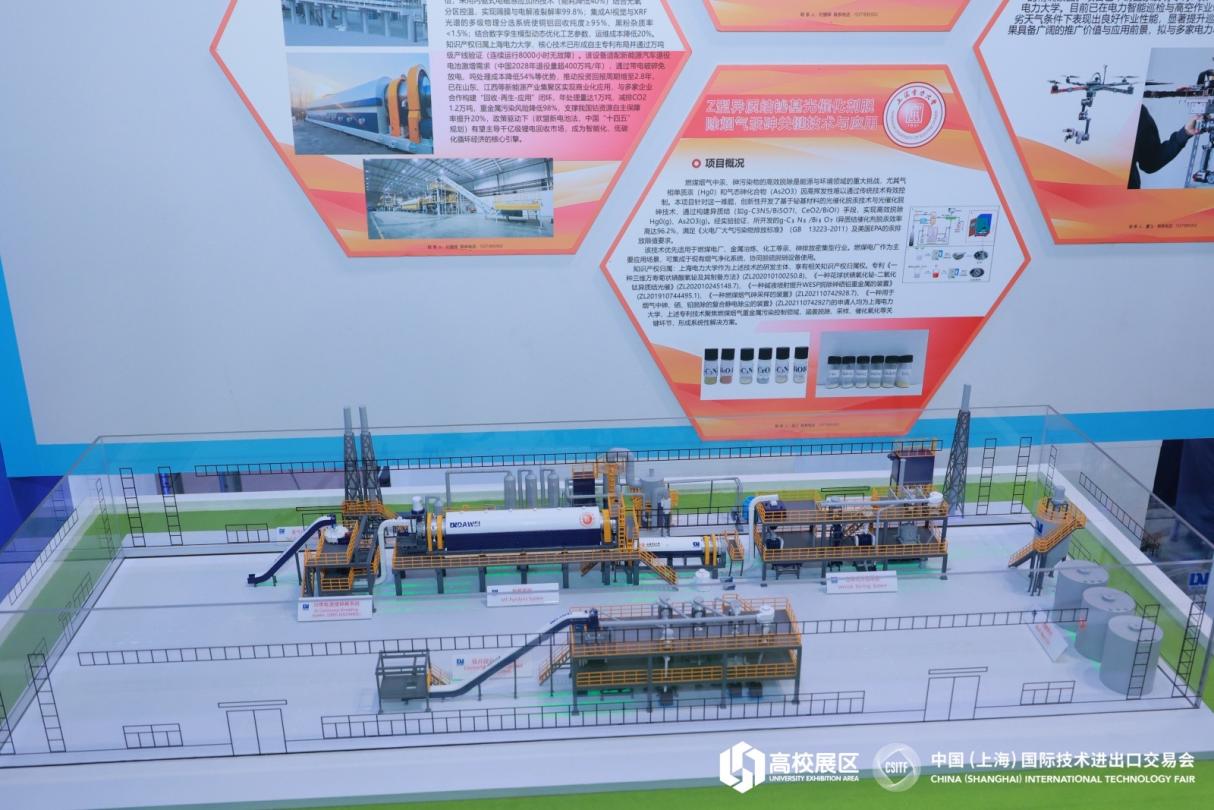 吴江老师团队的“Z型异质结铋基光催化剂脱除烟气汞砷关键技术与应用”项目,创新性开发了基于铋基材料的光催化脱汞技术与光催化脱砷技术,可集成于现有烟气净化系统,协同脱硫脱硝设备使用。该项目获得本届上交会“绿色能源与储运先进项目奖”。
