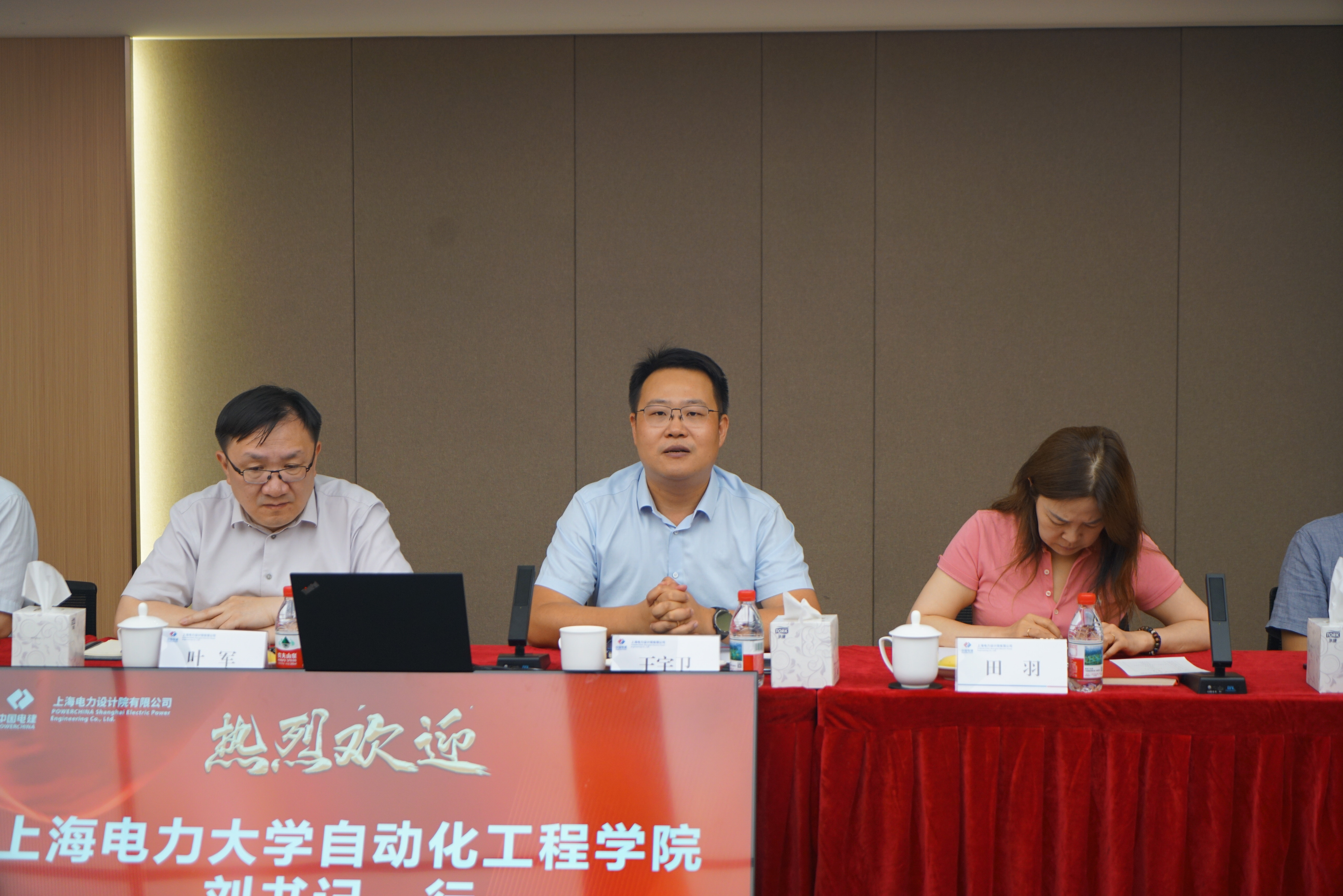 在会谈中,上海电力设计院党委副书记、总经理王宇卫对学院一行的到访表示欢迎。他围绕实现“双碳”目标、新型电力系统建设,介绍了公司近期经营发展情况,以及在新能源、燃气发电、新型储能、智能电网与综合能源服务等领域的发展成果与未来布局,并汇报了我校及自动化学院毕业生在公司工作情况。