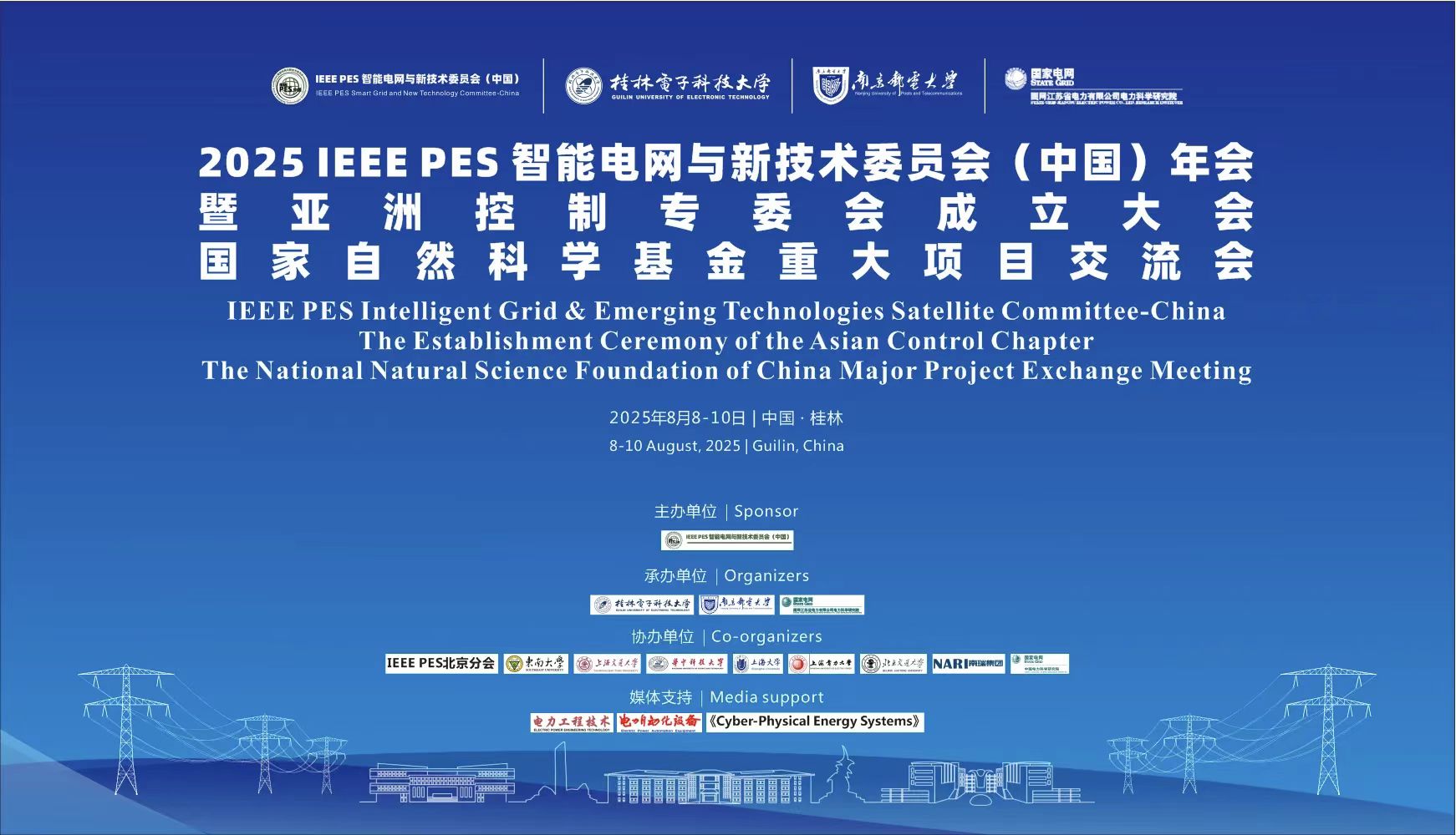 8月8日-10日,由IEEE PES中国区智能电网与新技术卫星委员会主办的2025 IEEE PES中国区智能电网与新技术卫星委员会年会暨亚洲控制专委会成立大会、国家自然科学基金重大项目交流会在桂林召开。学校作为本次会议的协办单位,受邀参加会议并作专题学术报告。