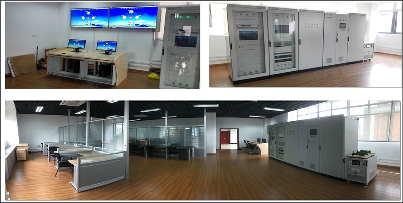 新能源微电网实验平台包括风电模拟器、光伏模拟器、储能装置、模拟电网电源、模拟负荷、光伏发电系统、汽车充电桩、d-Statcom无功补偿及电能质量治理系统、云计算平台等,可实现多电源协调控制、平抑光伏、风电的波动、削峰填谷、时移、并/离网切换、后备电源等功能。