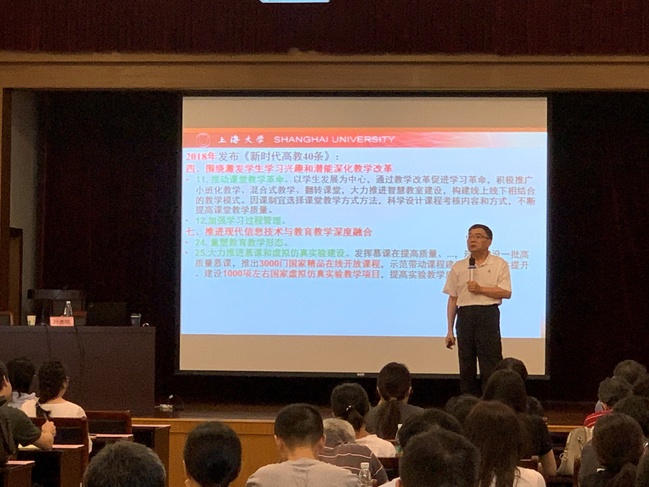 课程是人才培养的核心要素,课程质量直接决定人才培养质量。为全面推进我校一流本科课程建设,7月21日下午,教务处特邀原上海大学副校长叶志明教授在杨浦校区小礼堂,作题为“对一流课程建设的若干讨论”专题报告会。各二级学院的教学院长、专业负责人和骨干教师200多人参加,报告会由教务处处长杨宁主持。