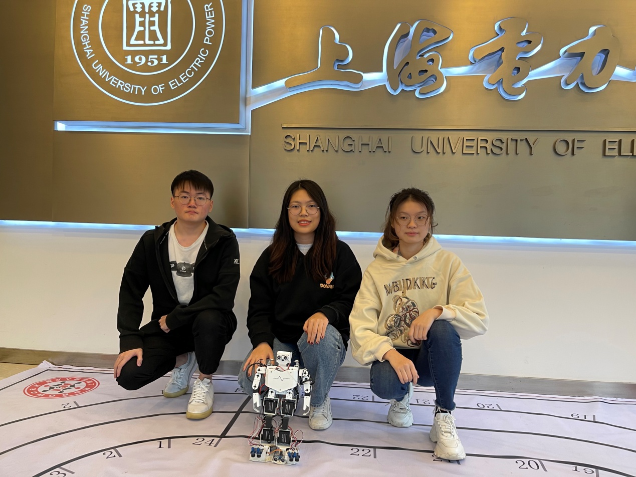 我校自动化工程学院学生曹智、王丹瑜、曹淼阳、王昊翔、杨欣莹、黄嘉娜、张良琪、李虹阳、方付婕、钟陈康、安峻成、黄凌雪、康婧、王文以及电气工程学院的闫博青等在薛阳、张国伟、杨旭红、杨艳华、张玲芳、康英伟等老师的指导下,组成了五支队伍参加此次大赛。经过大半年的艰苦努力和不懈坚持,我校参赛队最终喜获2个一等奖和1个三等奖的好成绩。其中参加仿人竞速项目标准赛的人型机器人控制策略中,以分段行走的时间来确定调用不同的动作,使得弯道和直道采用不同的循迹算法,该机器人能够又准又快地前进,并且迅速到达终点。