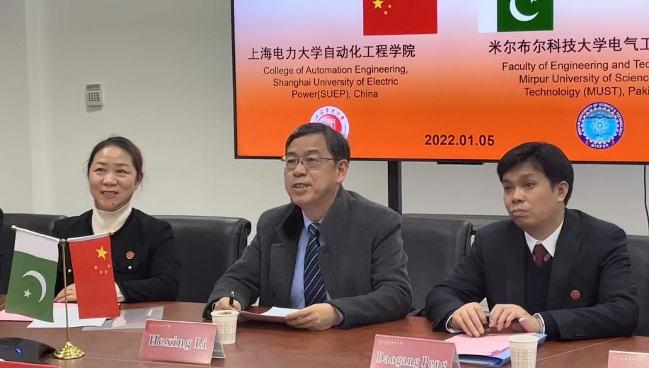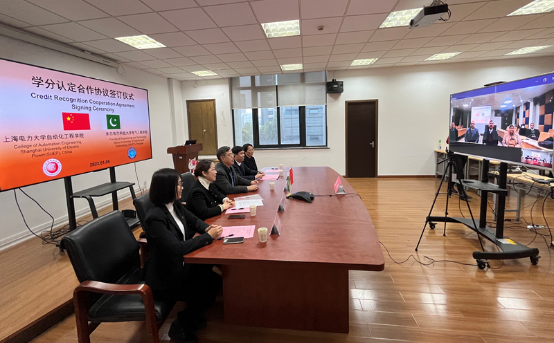 北京时间1月5日下午,2022年新年伊始,我校自动化工程学院与巴基斯坦米尔普尔科技大学工程技术学院举行线上学分认定合作协议签订仪式。校党委副书记、校长李和兴、国际交流与合作处处长曾芬钰、自动化工程学院党委书记刘莉、院长彭道刚、副院长陈辉、巴基斯坦米尔普尔科技大学行政执行长官、副校长Younus Javed、工程技术学院院长Syed Hassan Mujtaba Jafri、学生处主任Nasim Akhtar、教师代表Muhammad Ilyas Menhas等出席了本次协议签订仪式。会议由曾芬钰主持。