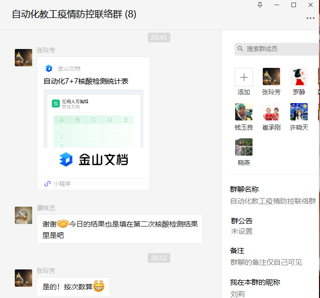 为了相关信息能更加及时准确的上传下达和精确统计,学院成立了由党员组成的“信息联络员队伍”,由张玲芳、罗静、许晓天、崔承刚、钱玉良、康姝艺、苏晓燕和李玲等9位党员老师组成,他们数据一个一个的排摸,还会相互传授经验,共享信息,大大提高了数据信息的准确度和及时性。