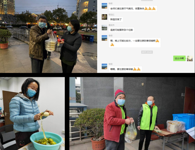 此次学院一共18位老师在校隔离,其中党员16名,第一时间成立临时党支部,并建立了“杨浦临时小家”微信群,由党委书记担任支部书记,实施支部党员“人人志愿者”,积极主动为大家服务,取餐、物资供应、确保了老师们的生活和工作有保障。李辉老师主动承担起了“信息发布员”,学校有什么消息都是第一时间向老师们发布。因为致远楼被封控管理,老师们还为无法为更多的人提供服务而感到遗憾。