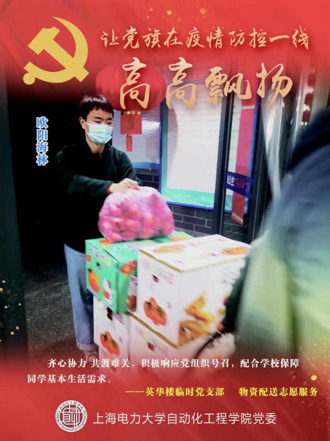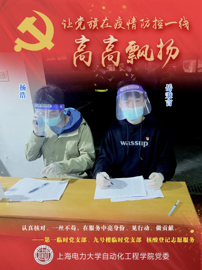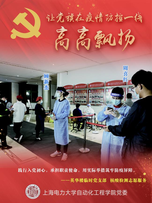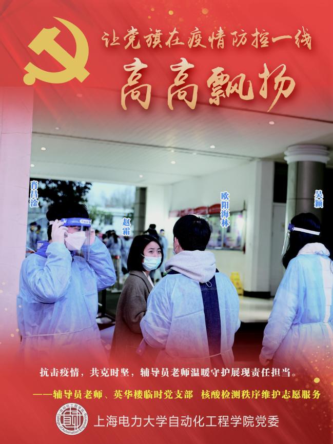 自我校杨浦校区进入“7天封闭+7天自主健康监测”管控模式以来,自动化工程学院党委响应号召,迅速行动,在宿舍园区成立临时学生党支部。全体党员闻令而动,以身作则,勇于站出来、敢于冲上去,奔赴疫情防控第一线。在核酸检测志愿服务、餐饮配送志愿服务、校门秩序维护志愿服务、应急打印物资配送等志愿服务中均能看见一个个热心、耐心、上心的青年党员,他们是“先锋队”也是守“沪”人。