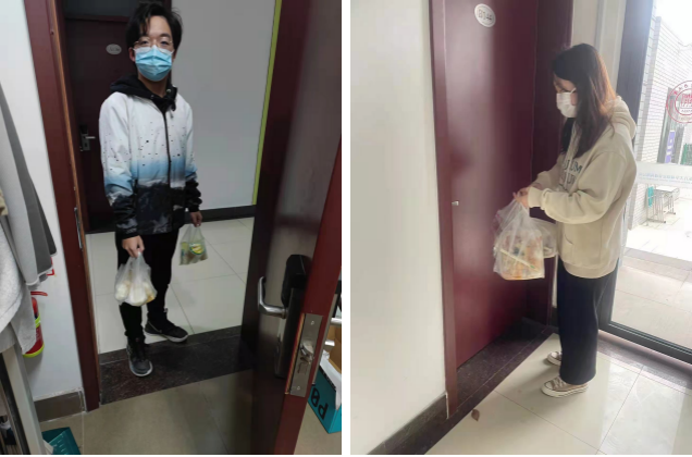 学院各临时党支部、党小组每天协助学校做好宿舍园区送餐和垃圾分类的志愿服务工作,诠释了“奉献、友爱、互助、进步”的志愿精神,为学校的防疫工作提供了强劲力量,彰显青年党员使命担当。为避免交叉感染和降低传播风险,九号楼临时党支部提前通知同学将盒子或是凳子放置在门口,通过“排班轮岗”的形式组织送餐。同时,党员志愿者及时将同学们遇到的问题和问题进行汇总记录,确保事事有回应,件件有落实。