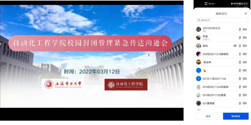 学院党委,连夜开会协商疫情防控相关事宜,组织和部署线上线下工作,辅导员和学生的生命安全是第一位,再强调严格防护自身的同时全力配合学校疫情防控工作部署,“主动承担,贯彻执行”。杨浦校区辅导员赵霜、洪茜、邬腾飞为落实好封闭期间各项工作的细则,两天两夜没有休息;临港校区辅导员陈炜,独自坚守临港校园,主动承担起临港校区自动化工程学院的疫情防控工作、学院日常工作,保质保量完成任务;被封控在家的辅导员于晨、侯林,彻夜逐一联系学生干部,了解班级情况,提示防控要点,指导落实防控工作。“让学子、让家长看到,有辅导员的地方,就有力量和希望”这是自动化工程学院辅导员们的心声。