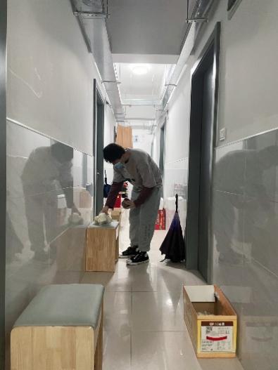 赵霜老师从第一次进驻杨浦校区的辅导员,已经连续工作两周,第三周她仍然主动请缨留校园工作,原因是“我熟悉现在的情况,工作起来效率更高”,疫情防控做工作辛苦不言而喻。经常需要连夜组织核酸汇报数据、加班加点的协商学生日常生活的事宜,简单到吃饭、洗澡在疫情防控要求下都需要提前规划组织。同时,赵霜老师还配合学校完成相关防控工作,高强度的工作,艰苦的工作条件,并没有影响她本职心理专项工作的开展。