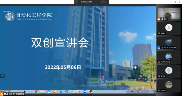 为鼓励学生积极开展创新创业实践活动,激发学生的创新创业热情,2022年5月6日晚,自动化工程学院召开线上双创宣讲会,这是我校二级院部系列双创宣讲会的第一讲,由学院科创主管薛阳老师主讲,学校和学院等近两百名师生参加了本次会议。