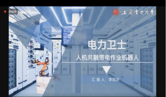 自动化学院研究生李双圻通过线上腾讯会议分享了“人机共融带电作业机器人”技术,项目首次将遥操作应用于电力运维机器人,通过机器人搭载高精度机械臂视觉伺服操作平台,具有全自主导航巡检,人机协同遥操作两种工作模式,极大拓展了机器人作业能力,为变电站的安全稳定提供保障。