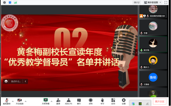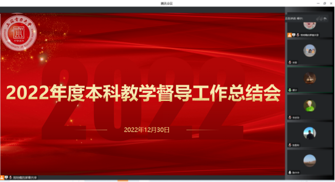 12月30日上午,我校召开2022年度本科教学督导工作线上总结会。副校长黄冬梅、教务处处长及副处长、各二级学院教学副院长、校教学督导组成员以及教务处相关人员参加会议,会议由教学督导组组长陈中华主持。