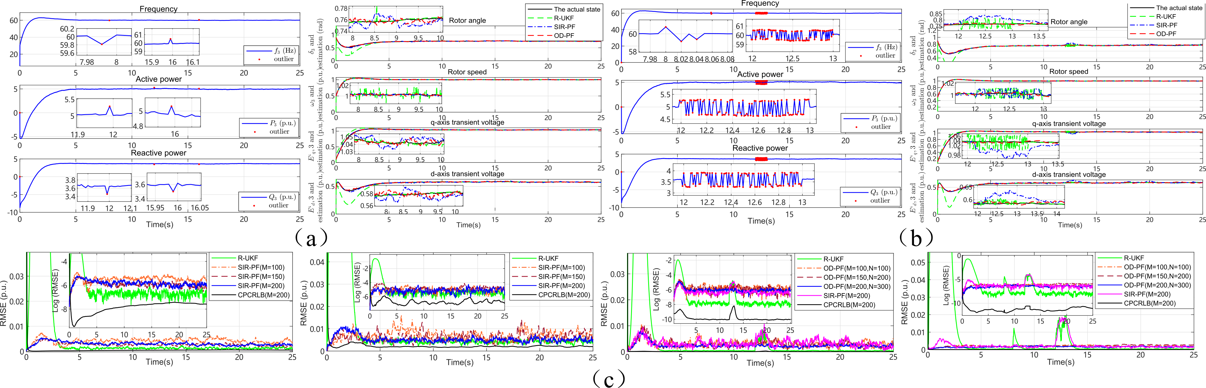 (a)脉冲型测量离群值的检测、定位及其影响下的状态估计 (b)连续型测量离群值的检测、定位及其影响下的状态估计 (c)性能边界