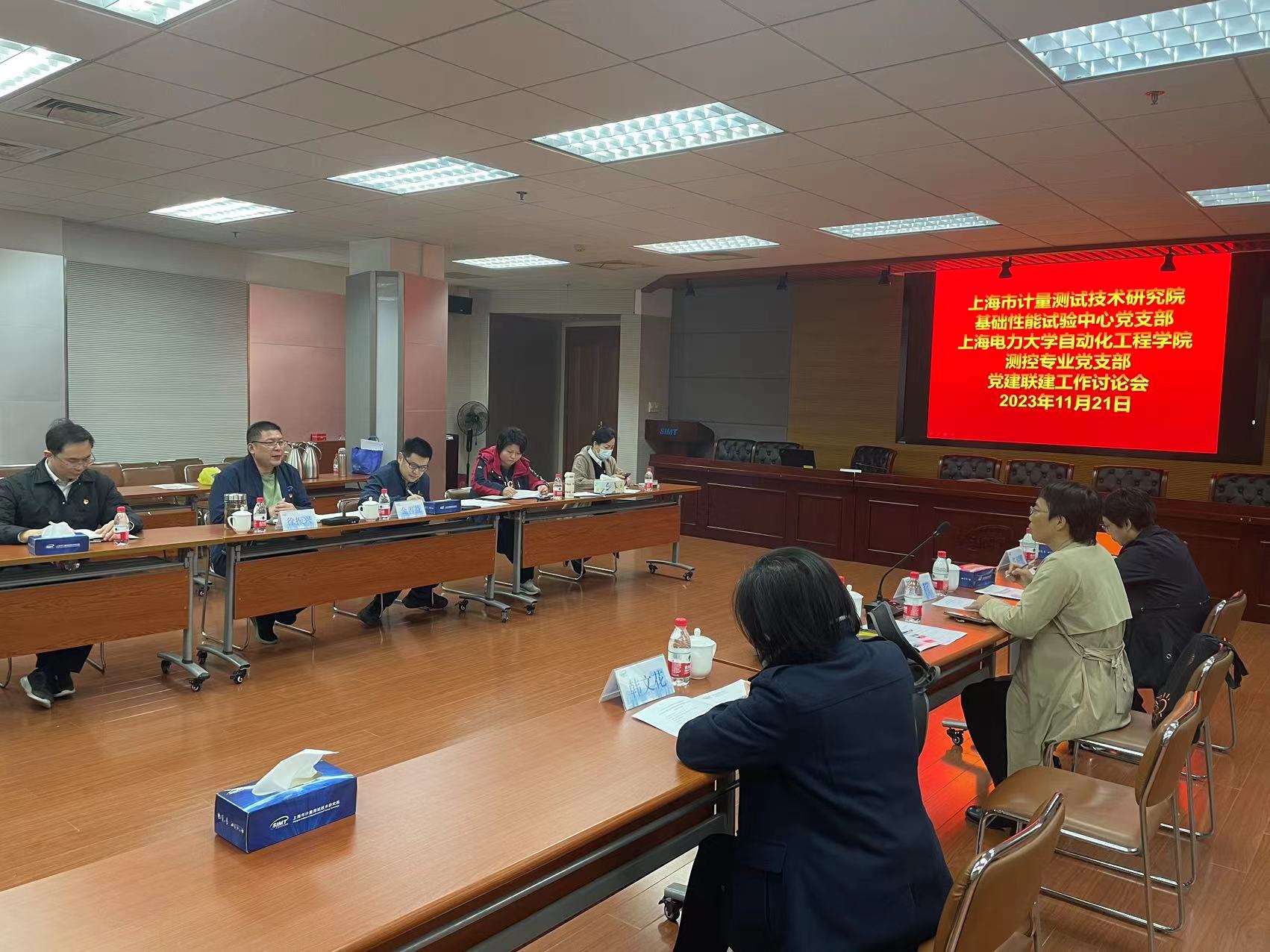 上海市计量测试技术研究院副院长徐振兴、基础性能试验中心主任兼党支部书记金善益对刘莉一行表示热烈欢迎,并介绍了研究院和基础性能试验中心党支部的基本情况,刘莉表达了感谢并介绍了学校、学院和测控教工党支部的基本情况。随后双方围绕人才培养、实习实践、科研合作等进行了深入交流。她希望通过开展党组织共建,引领和推动双方的交流与合作,实现“资源共享、优势互补”。双方支部表示,未来将以支部共建为契机,加强校企交流与合作,多措并举推进党建与业务工作“双融合”“双促进”。