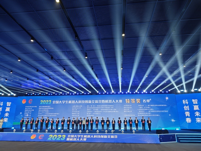 科创青春,智赢未来!12月17日至19日,由共青团中央、工业和信息化部共同主办的2023年全国大学生机器人科技创新交流营暨机器人大赛终审决赛在山东省日照市举办。19日下午,大赛组委会公布本届大赛50个特等奖、74个一等奖、94个二等奖、300个三等奖团队名单。在颁奖仪式上,共青团中央书记处常务书记、全国青联主席徐晓,山东省人大常委会副主任王随莲出席并讲话,中国科学院院士、大赛评审委员会主任毛明等出席。