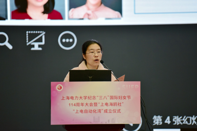 阳春三月春意暖,巾帼奕奕绽芳华。3月12日下午,由校妇工委、工会女工委主办的纪念“三八”国际妇女节114周年大会暨“上电海鸥社”“上电自动化湾”成立仪式在临港校区学术楼117会议室举行。