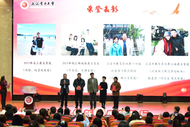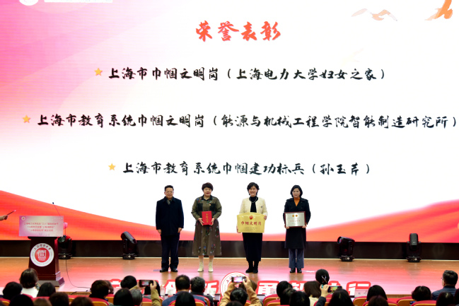 大会对获得上海市巾帼文明岗、教育系统巾帼文明岗、教育系统巾帼建功标兵、海上最美家庭、南汇新城镇最美家庭、上海市教育系统比翼双飞模范佳侣的个人和集体代表进行了表彰。