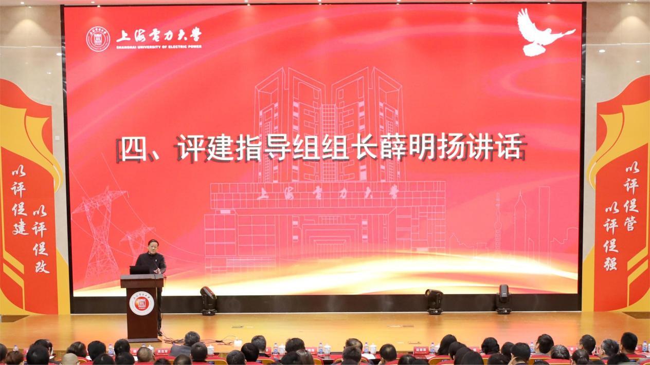校党委书记李明福在致辞中表示,学校对上海市教委督导室、上海市教育评估院、评建指导专家组莅临指导表示热烈欢迎和衷心感谢。李明福指出,本科教育教学工作关乎学校事业发展、关乎人才自主培养质量的头等大事,重中之重。此次本科教育教学审核评估,既是对学校总体办学水平和治理能力的一次全面检验,也是找短板、补差距、强优势,深化学校教育综合改革,加快建设能源电力特色鲜明的高水平大学的难得机遇。审核评估工作启动会的召开,标志着学校评建工作进入到了新的阶段,全校上下将以本科教育教学审核评估为重要契机,以教育综合改革为动力,进一步在思想上、认识上、行动上高度重视,牢固树立全校“一盘棋”的思想意识,构建“全面动员、全员参与、分工负责、协同配合、全力推进”的协同工作机制,全力推动审核评估工作扎实开展。