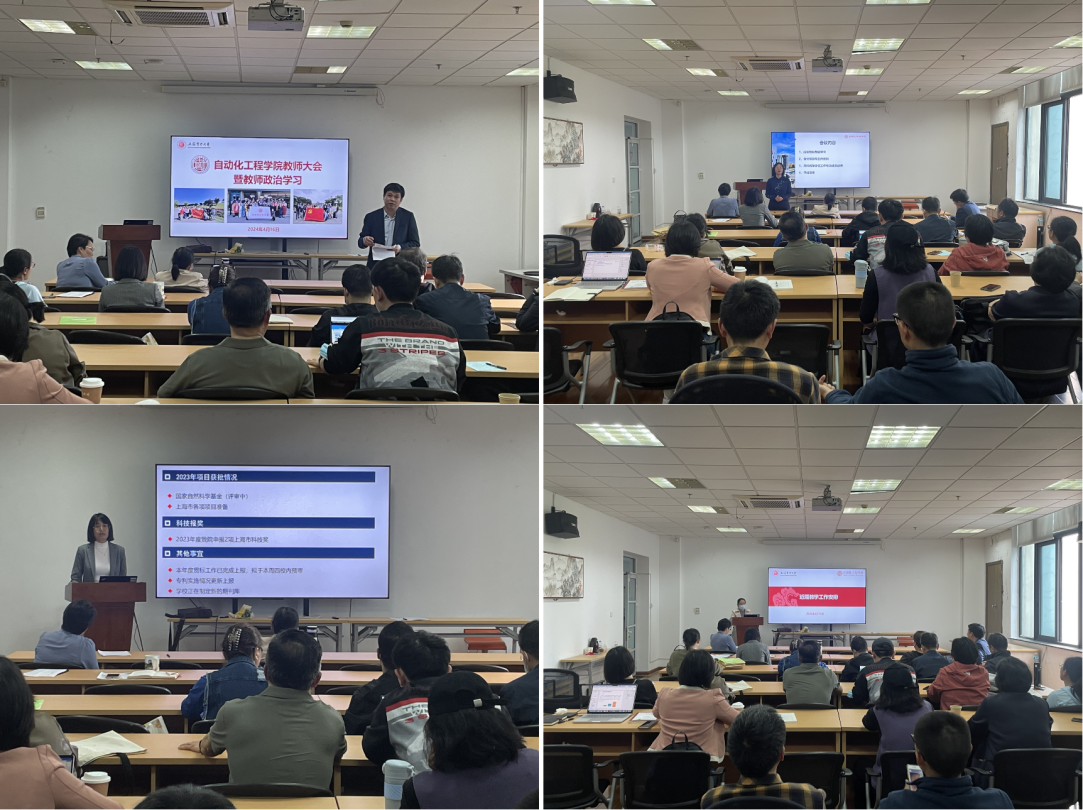 为深入学习贯彻习近平总书记重要指示精神,进一步加强教师思想政治建设,强化教师责任担当,推动学院高质量发展,4月16日,自动化工程学院在杨浦校区致远楼召开教师大会暨书记课堂活动,学院全体教职工参会,会议由学院党委书记刘莉主持。