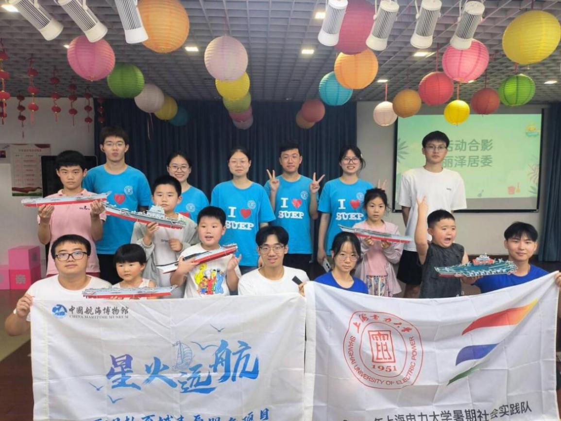 环境与化学工程学院“航传薪火”实践队赴浦东新区书院镇、宜浩欧景社区,带领当地青少年学习航海知识、航模制作等课程,在学生心里埋下一颗海洋强国、航运兴国的种子,为传承航运精神,实现航运强国贡献青春力量。