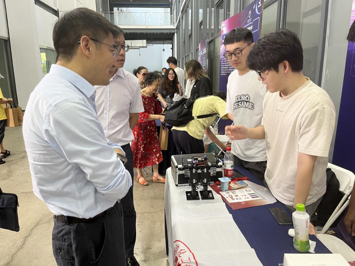 自动化工程学院积极响应号召,投身于科普工作。由学院研究生吴翊豪、梁世伟,本科生金裕斌、赵孙澜澜四位同学展出介绍了窄足竞步仿人机器人“小锦鲤”,并向参观的人员进行科普并发放了学院纪念品。