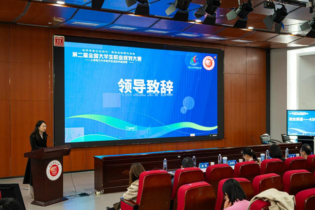 陈静在致辞中指出,当今社会竞争激烈,研究生不仅要有扎实的专业知识,还需要有明确的职业规划能力,职业规划不仅是对未来的展望,更是对当下的思考和行动。她希望大家以此次大赛为契机,找到属于自己的方向,脚踏实地地迈向理想。同时,她表示学校将继续加强职业指导与就业服务工作,为学生提供更多实践机会和平台,帮助他们在职业发展道路上行稳致远。